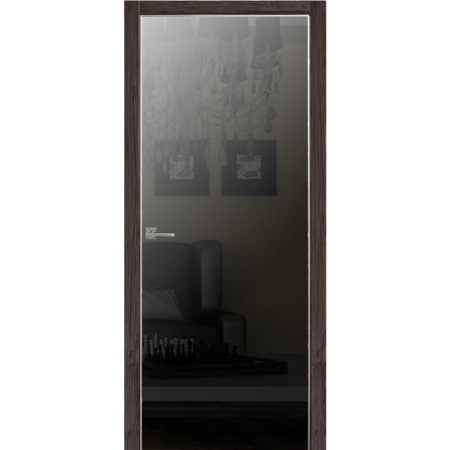 Дверь Альфа 1 с алюминиевой кромкой (Зеркало графит с одной стороны)