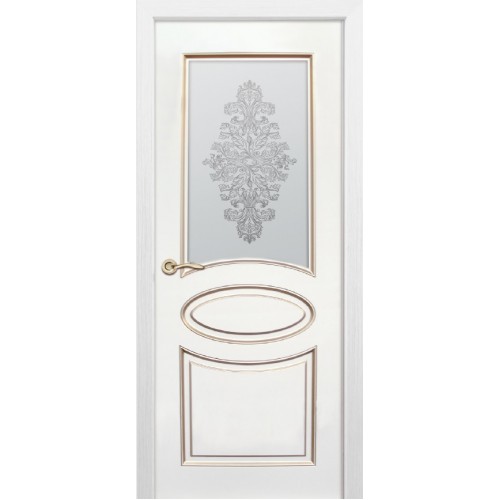 Дверь с ПВХ покрытием Эмма 180 ДО (Софт Белый/Патина Шампань, Наливной витраж)