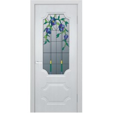 Дверь с ПВХ покрытием Эмма 10 ДО (Софт Белый, Цветной наливной витраж)