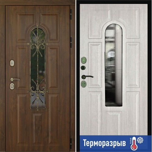 Надежная и долговечная входная конструкция оптимально подходит для установки на улице — в коттедже или частном доме за городом.